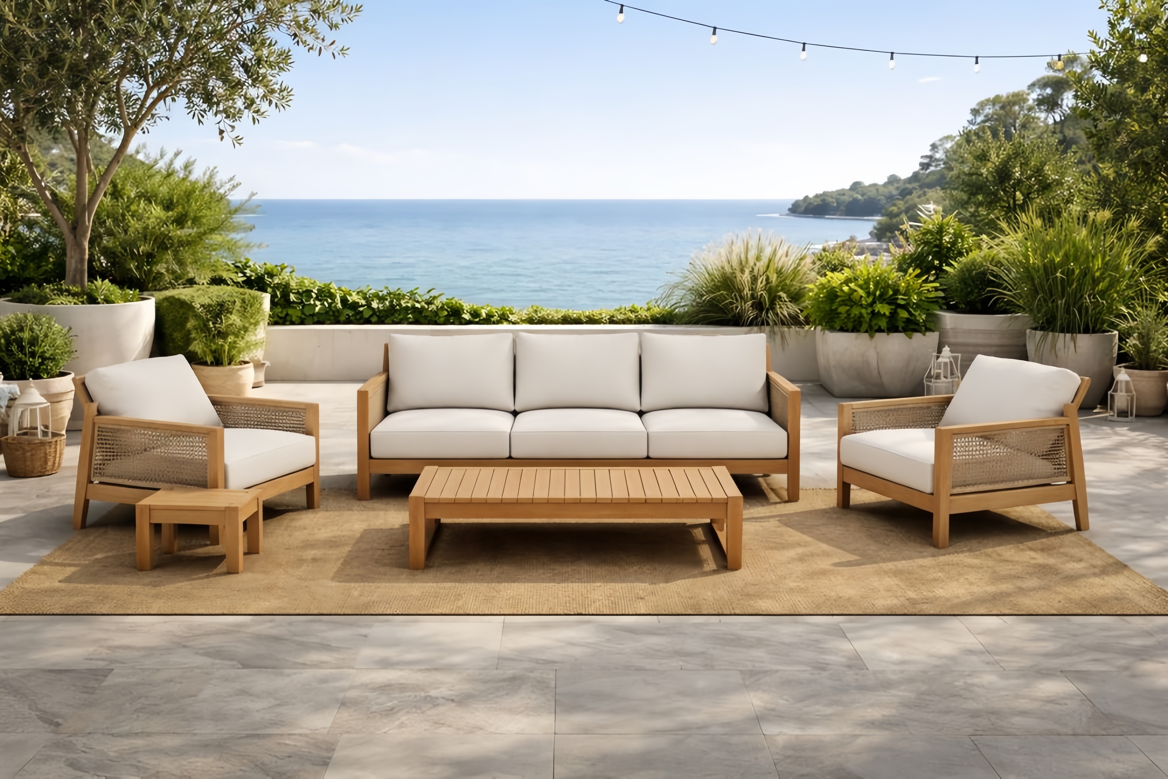 Teak Wood Outdoor Furniture Set with Cushions and Table